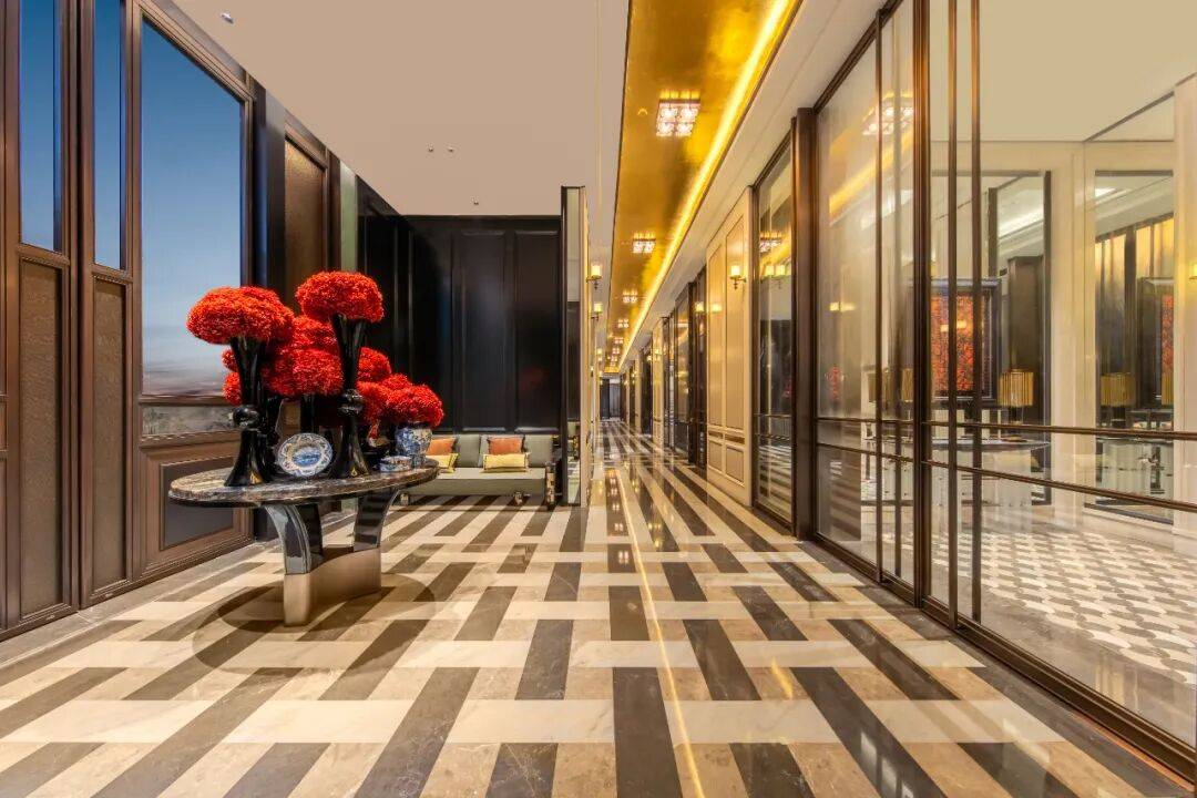 值得一提的还有:为了满足不同年龄段业主的需求,项目在多楼栋设有架空层,涵盖健身、阅读、娱乐等功能,并且将海派元素融入其中,有一种五星级酒店长廊的既视感!