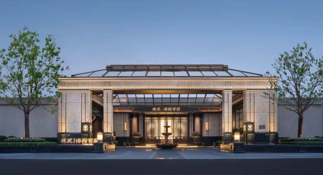 比如项目的门楼采用了上海海鸥丽晶酒店同款巴西金石材。接待大厅采用进口奢石巴西乌金石打造的大理石柱。接待台则采用玻利维亚蓝,这是世界上储存量极少的石材之一,被称为奢石中的劳斯莱斯。随处可见Old money的奢华风格。